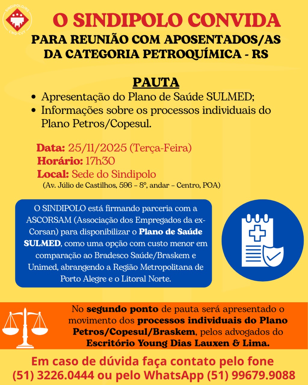 Atenção aposentados (as) da categoria Petroquímica – RS