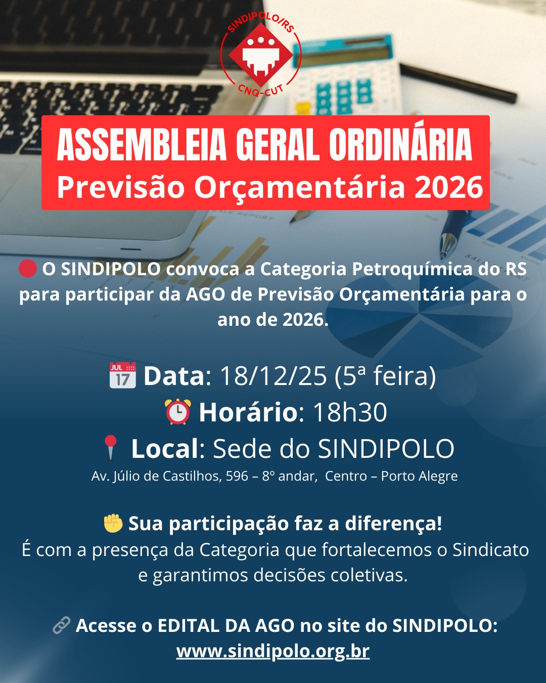 No dia 18/12/2025, compareça na AGO. Participe e fortaleça o seu sindicato!